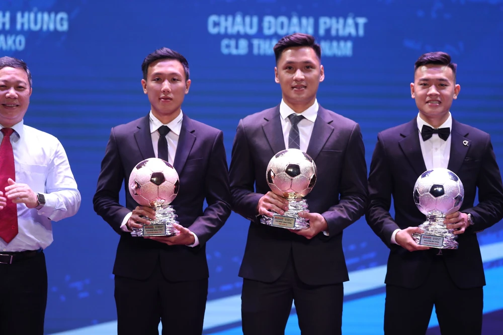 Tuyển thủ Nguyễn Hoàng Đức được nhận danh hiệu QBV 2021, QBB là Nguyễn Quang Hải, Nguyễn Tiến Linh đoạt QBĐ.
