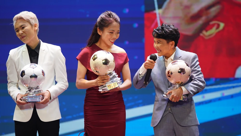 Ba gương mặt nữ tuyển thủ quen thuộc (từ trái qua): Hải Yến đạt QBB, Huỳnh Như đạt QBV và Bích Thùy với QBĐ.