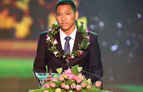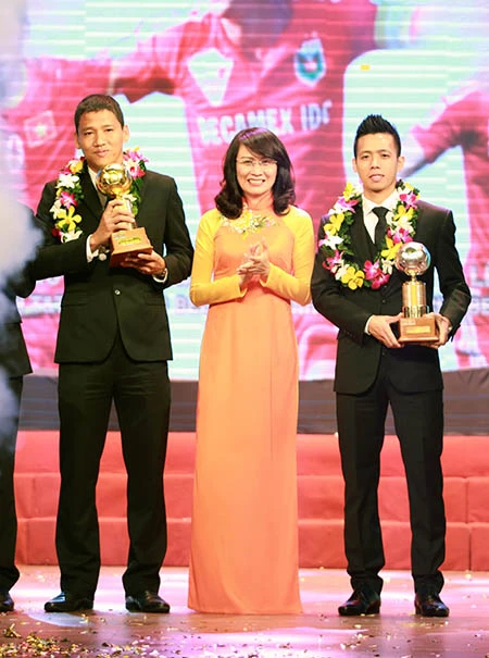 | Anh Đức đoạt Quả bóng vàng Việt Nam 2015 Không ngoài dự đoán của giới chuyên môn, cuộc đua về đích giải thưởng Quả bóng vàng nam đã thuộc về tiền đạo Nguyễn Anh Đức. Chân sút của B. Bình Dương có đóng góp và tạo sức ảnh hưởng rất lớn cho hai chức vô địch V-League lẫn Cúp Quốc gia cho đội nhà. Thêm một điểm cộng cho Anh Đức khi được các HLV bầu chọn anh lần thứ hai liên tiếp là cầu thủ xuất sắc nhất giải vô địch quốc gia. Quả bóng bạc nam dành cho Nguyễn Văn Quyết của Hà Nội T&T. Tiền đạo Lê Công Vinh đoạt Quả bóng đồng. Đây là năm thứ hai liên tiếp Văn Quyết và Công Vinh về nhì, ba giải thưởng cá nhân danh giá này. Quả bóng vàng nữ dành cho tiền đạo Minh Nguyệt (Hà Nội) với ấn tượng là cú đúp vào lưới đại đối thủ Thái Lan giúp tuyển nữ Việt Nam vào vòng loại cuối cùng Olympic Rio 2016. Quả bóng bạc nữ thuộc về tiền vệ Tuyết Dung của đội Hà Nam và Quả bóng đồng về tay Huỳnh Như của đội vô địch quốc gia TP.HCM. Một trong những sự quan tâm lớn nhất của giới hâm mộ chính là hạng mục cầu thủ trẻ xuất sắc nhất. Chân sút Công Phượng đã đăng quang với điểm số cao hơn đồng đội cùng khoác áo HA Gia Lai là tiền vệ Tuấn Anh và cầu thủ Duy Mạnh của Hà Nội T&T. Cầu thủ nữ trẻ hay nhất năm thuộc về Chương Thị Kiều của đội TP.HCM. Cầu thủ ngoại xuất sắc nhất dành cho Abass của B. Bình Dương. Anh đã vượt qua đồng đội Moses và Vua phá lưới V-League Patiyo. Giải thưởng cầu thủ Futsal xuất sắc nhất được trao cho Trần Văn Vũ đang khoác áo CLB Thái Sơn Nam. Đây cũng là lần đầu tiên môn Futsal được tôn vinh. |