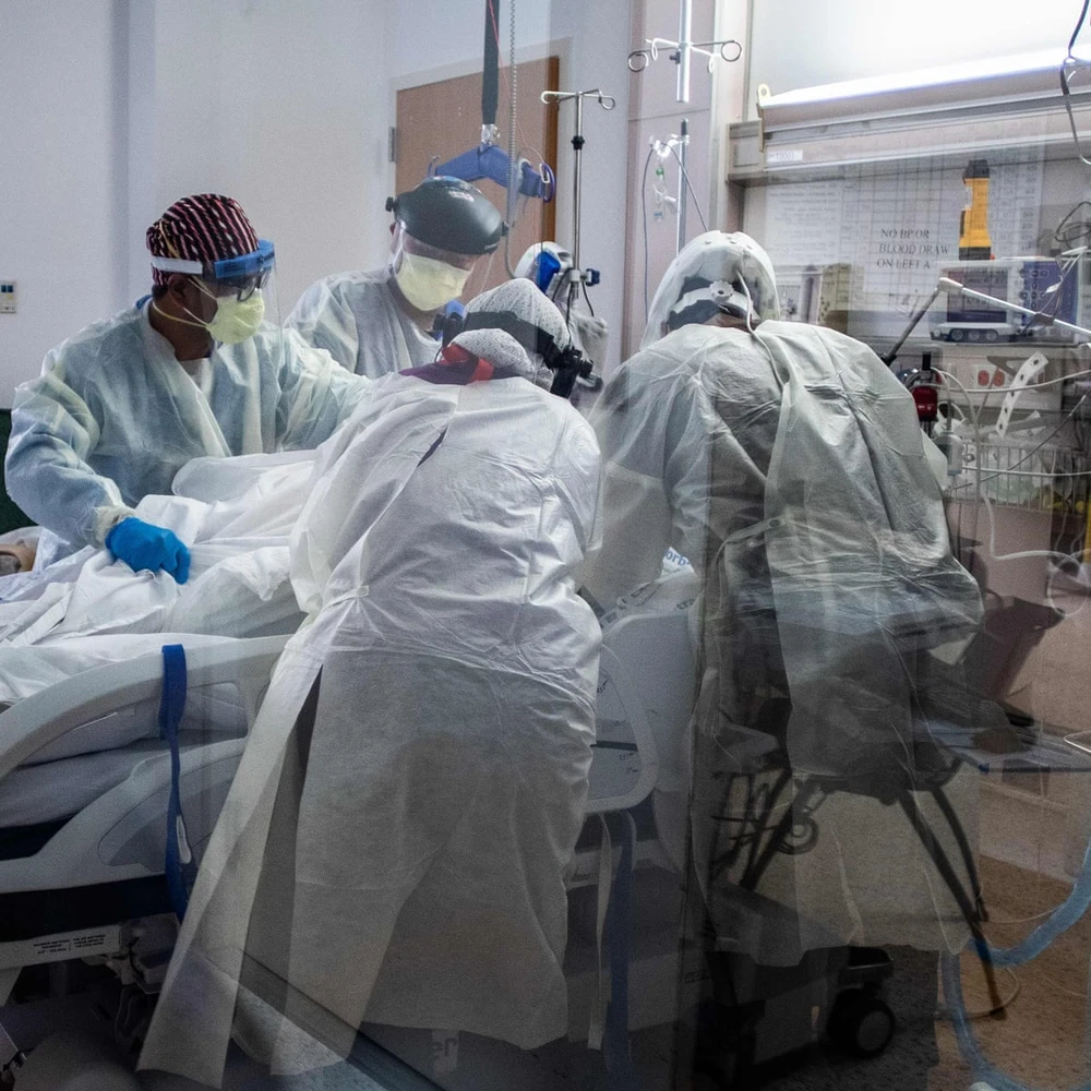 Các bác sĩ đang chăm sóc bệnh nhân COVID-19 ở một bệnh viện tại bang California. Ảnh: AP