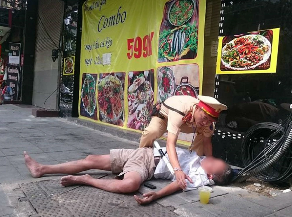 Vào thời điểm trên, trong lúc làm nhiệm vụ tăng cường bảo vệ tuyến phố đi bộ quanh Hồ Gươm, hai chiến sĩ của Đội CSGT 15, Công an TP Hà Nội phát hiện một cụ ông đi trên vỉa hè với dáng liêu xiêu như say rượu. Khi đến gần khu vực ngã tư Bà Triệu - Hai Bà Trưng, cụ bất ngờ nằm vật xuống đường, không còn biết gì.