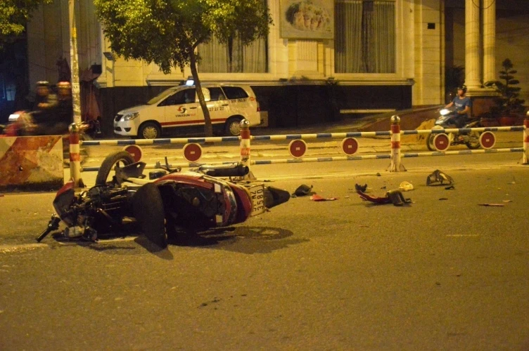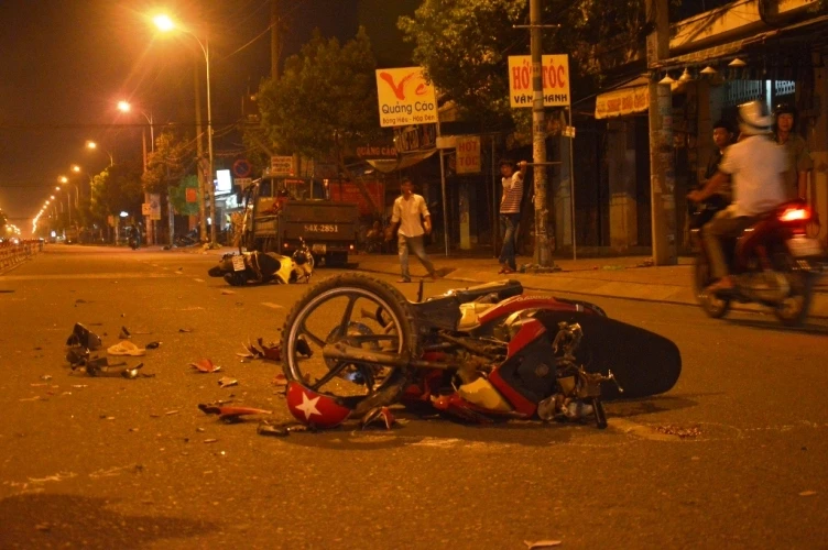 Vụ va chạm mạnh khiến hai phương tiện văng xa, hai xe máy hư hỏng nặng, ba người đều bị thương, trong đó người đàn ông trung niên bị thương rất nặng.