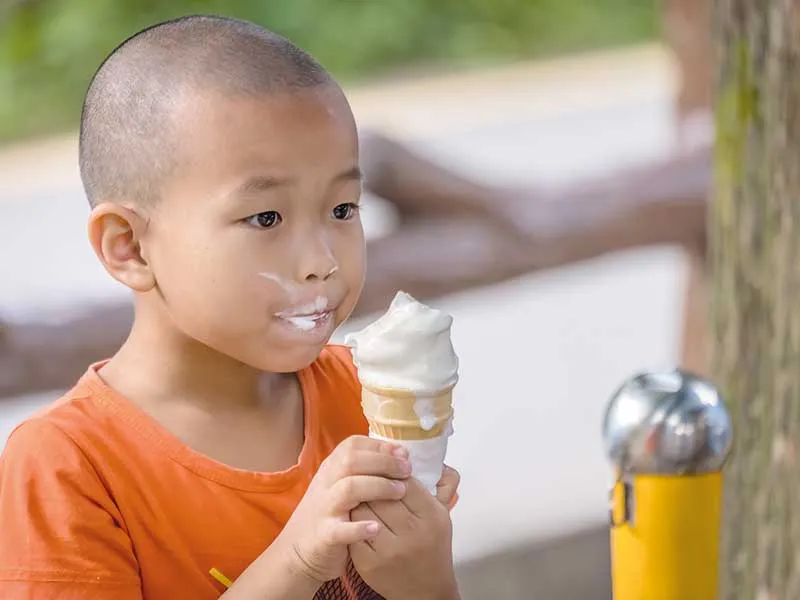 Tiếng rao đi trước: “Ai... kìa kía!”. Người rao đến sau, là ông già người Hoa đội nón cời lối bằng tre có chóp nhọn, bận cái áo ngả màu cháo lòng. Mới có tiếng rao thôi đã có rải rác từ mấy nhà thụt thò ra mấy cái đầu bù của đám con nít. Ông đi từ đoạn cầu Ba Cẳng, bến Trần Văn Khỏe, ngang qua khu Cây Gõ và đúng boong 3 giờ chiều là đến đây. Lúc đó đám con nít vừa thức sau giấc ngủ trưa.