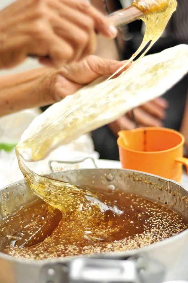 Món ăn hồi nhỏ sao mà còn những món kỳ lạ quá. Nửa thế kỷ trôi qua, Tấn lớn lên làm nghề lái xe, đi khắp Sài Gòn, Chợ Lớn và tỉnh xa mà không tìm đâu ra một ông già bán kẹo thổi ra được hình con thú. Cái ông hồi còn nhỏ Tấn thấy là trước Trường Tiểu học Minh Phụng, bây giờ là Trường Nguyễn Đức Cảnh. Khi học trò bu lại đã đủ, ông bắt đầu biểu diễn, tay phải cầm ống kê lên miệng, tay trái vít một miếng đường dẻo trong veo có nhuộm màu vàng. Miếng đường ịn vào cái ống và ông bắt đầu thổi. Hơi chui vào miếng đường làm phồng lên và tùy theo tay ông xoay cái ống mà hình dạng con vật nào đó lộ ra. Tay trái của ông uốn éo để di chuyển miếng đường dẻo sao cho lồi chỗ này, khuyết chỗ kia. Khi ông ngưng thổi, miếng đường hiện ra con heo, con chuột hoặc con gà, khá giống thật, trong veo như thủy tinh. Lúc đó đường đã cứng lại, ông đưa cho đứa nào mua một con gắn trên cái que. Cũng chỉ năm cắc!