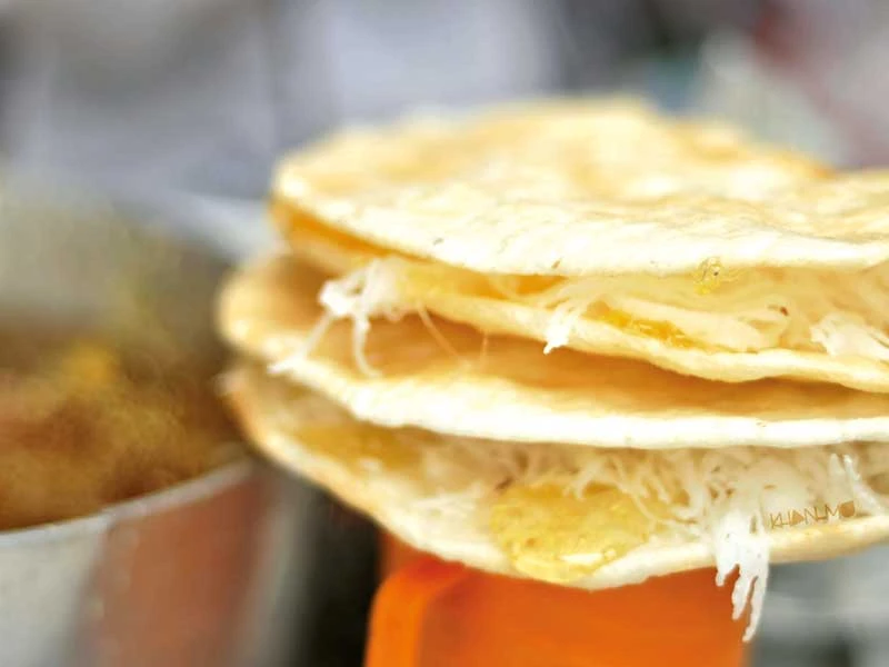 Lần đầu cắn miếng bánh tráng, Tấn nhai chậm, ngẫm nghĩ. Đó là sự kết hợp tuyệt vời giữa ba vị, ngọt của bánh tráng, béo của dừa nạo và thơm của mè. Thật ra có tới hai vị ngọt của bánh và dừa, hai vị béo của dừa và mè... nhưng khác nhau về cung bậc và kiểu cách. Sau này lớn rồi mới nhớ lại và phân tích, chứ hồi xưa Tấn chỉ biết nhai mà thấy sung sướng vì trên đời sao có nhiều món hàng rong rẻ mà ngon dữ vậy. Có người bảo đó là món bò bía ngọt, nhưng Tấn nhớ nó giản dị hơn, không có kẹo mạch nha như bây giờ. Đó là phiên bản dành cho con nít?