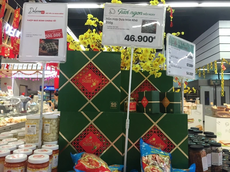 Đại diện Saigon Co.op thông tin, đây là thời điểm tiêu thụ giỏ quà tết mạnh nhất trong năm. Ứớc tính mỗi ngày các siêu thị Co.opmart, Co.opXtra, Co.op Food, Co.op Smile tiêu thụ gần 12.000 giỏ quà tết các loại, tăng hơn 20% so với cùng kỳ năm trước. Nhóm giỏ quà tiêu thụ mạnh nhất quanh mức giá 300.000 đồng đến 600.000 đồng.