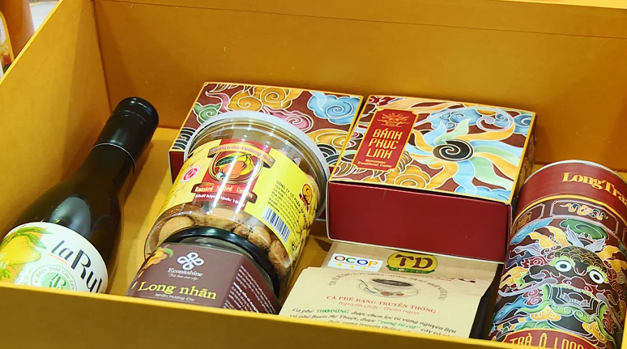 Bên cạnh đó, giỏ quà còn có nụ quế thông được sản xuất theo phương thức canh tác vườn rừng gắn với bảo tồn khu rừng quế ở huyện Tiên Phước, tỉnh Quảng Nam…