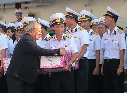 Lãnh đạo tỉnh Khánh Hòa trao quà tiễn các tàu đưa quân ra các điểm đảo.