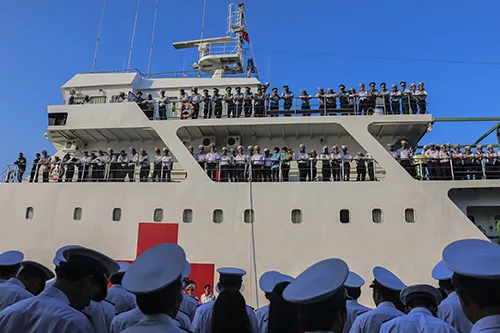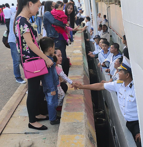 Người thân chia tay các chiến sĩ trong ngày các anh lên đường ra đảo.