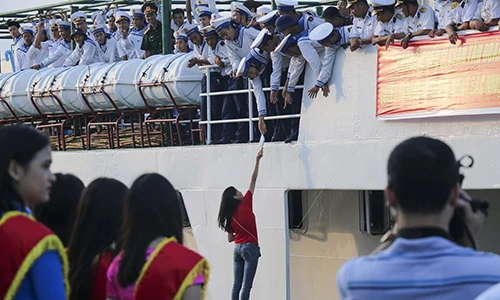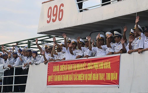 Những cái nắm tay, lời chúc các chiến sĩ vững tin nơi đầu sóng.