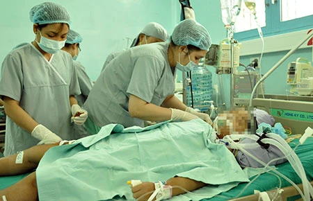 Bệnh nhi Ngọc Minh đang được hồi sức. Ảnh: TÙNG SƠN
