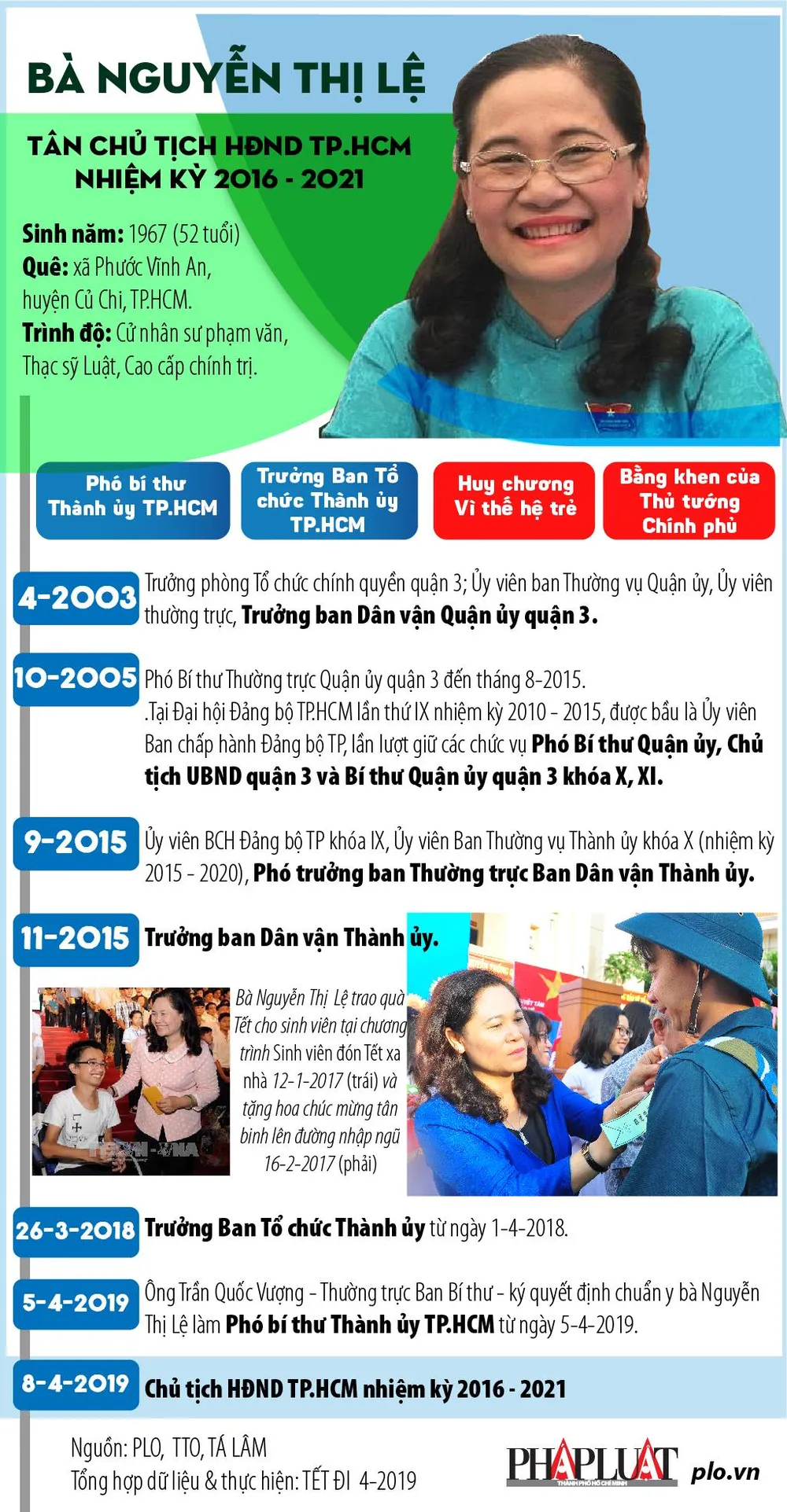 Quá trình công tác của tân Chủ tịch HĐND TP.HCM Nguyễn Thị Lệ