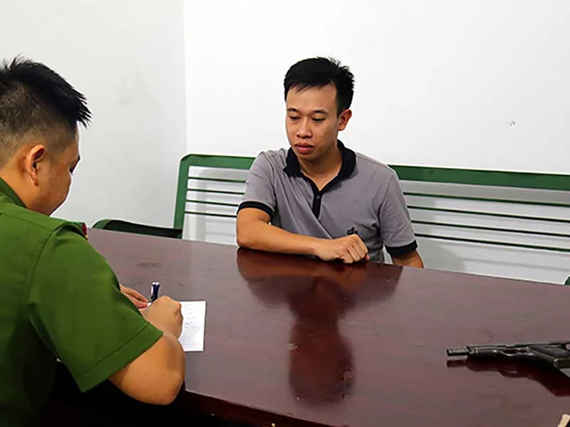 Thời điểm đó, chủ tiệm đi vắng, chỉ có một số nhân viên bên trong. Nghi phạm đeo ba lô, bịt khẩu trang, bước vào vờ yêu cầu giao dịch chuyển tiền. Sau khi đưa thông tin tài khoản sai, Tùng bất ngờ rút súng uy hiếp và quát: “Đưa tiền đây!”.
