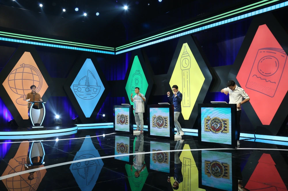 Ngay sau đó, MC Minh Xù liền đọc câu hỏi chứa giá trị giải thưởng 20 triệu đồng với nội dung: “Có bao nhiêu chiếc nón trong bức ảnh này?”.