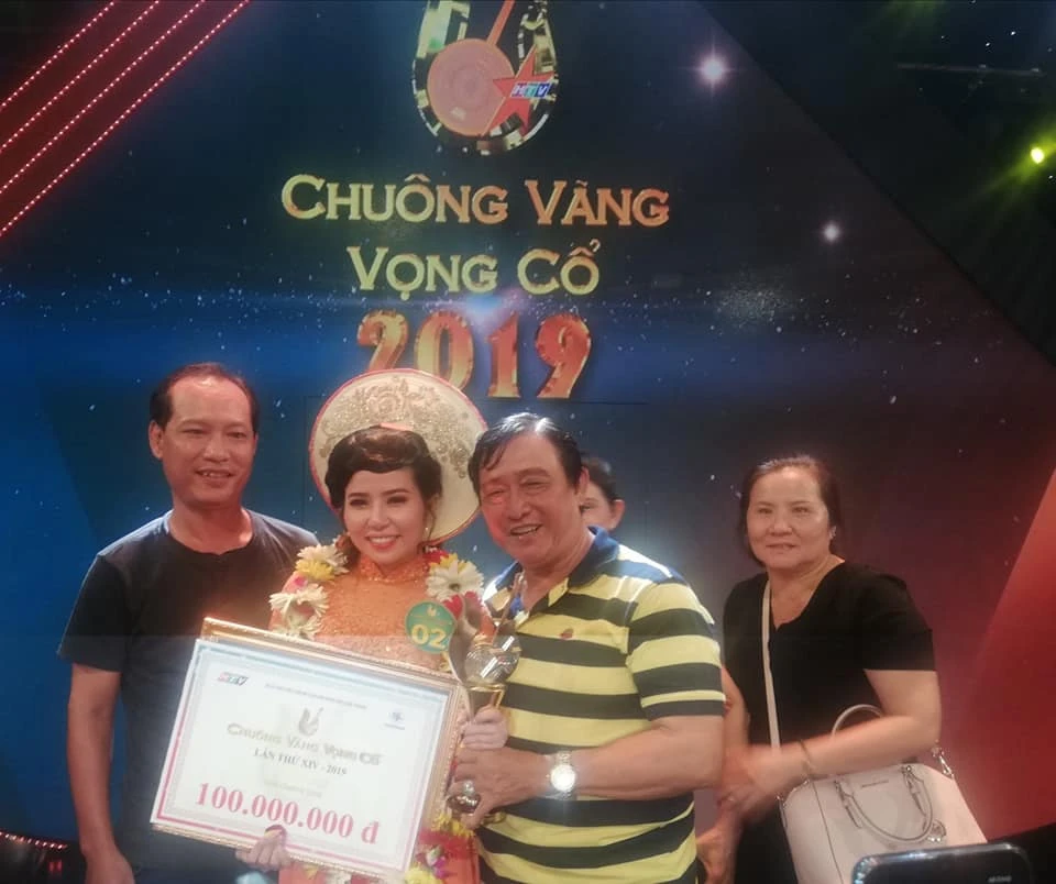 Tân quán quân Chuông vàng vọng cổ và người thân.