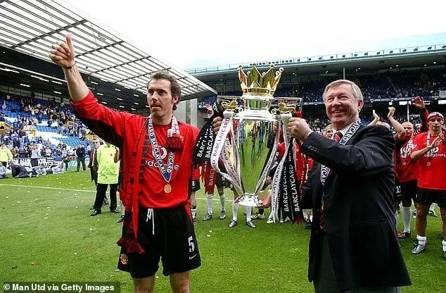Hậu vệ Blanc ăn mừng chức vô địch với thầy Ferguson. Ảnh: CGI.