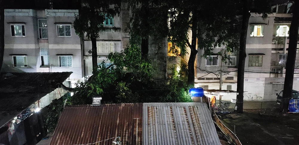 Đến rạng sáng nay, 30-8, hiện trường cây cổ thụ tét nhánh đè trúng nhà dân trên địa bàn quận 1, TP.HCM vẫn đang được lực lượng chức năng giải quyết.