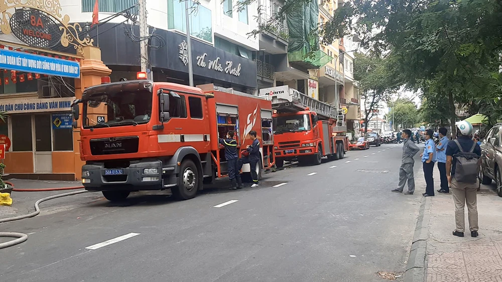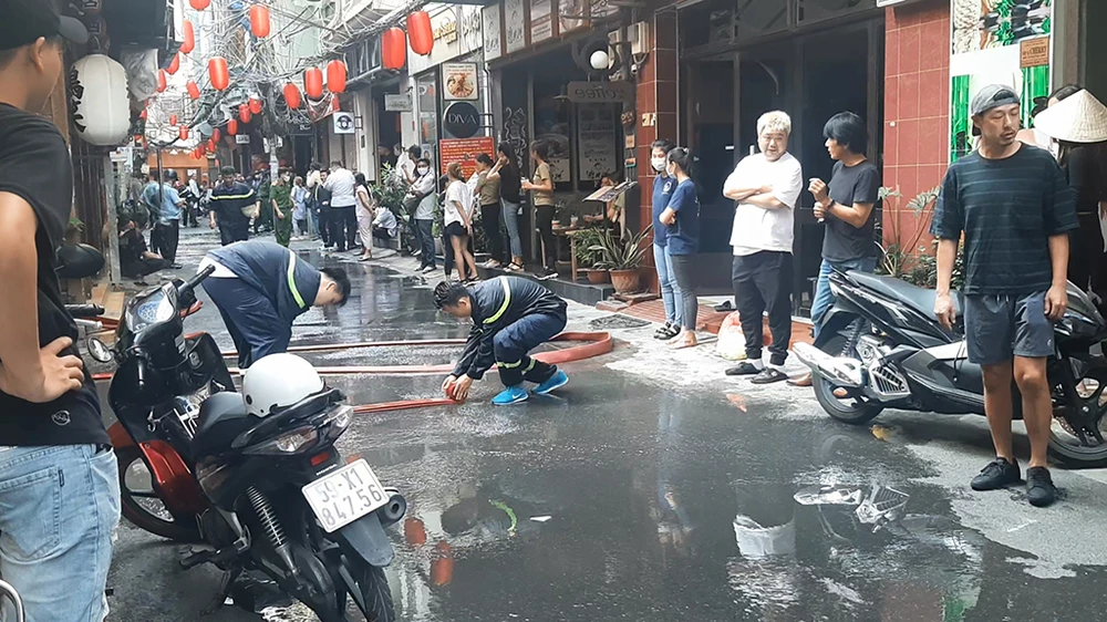 Cảnh sát PCCC quận 1 điều động hai xe cùng nhiều cán bộ chiến sĩ đến hiện trường chữa cháy. Cảnh sát chia các hướng tiếp cận khống chế hỏa hoạn. Do khu vực cháy nằm trong con hẻm nên lực lượng chức năng phải nối vòi rồng bơm nước bên ngoài vào.