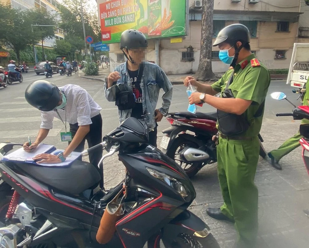 Quận 1 xử phạt nghiêm các trường hợp không đeo khẩu trang khi ra đường. Ảnh: TH