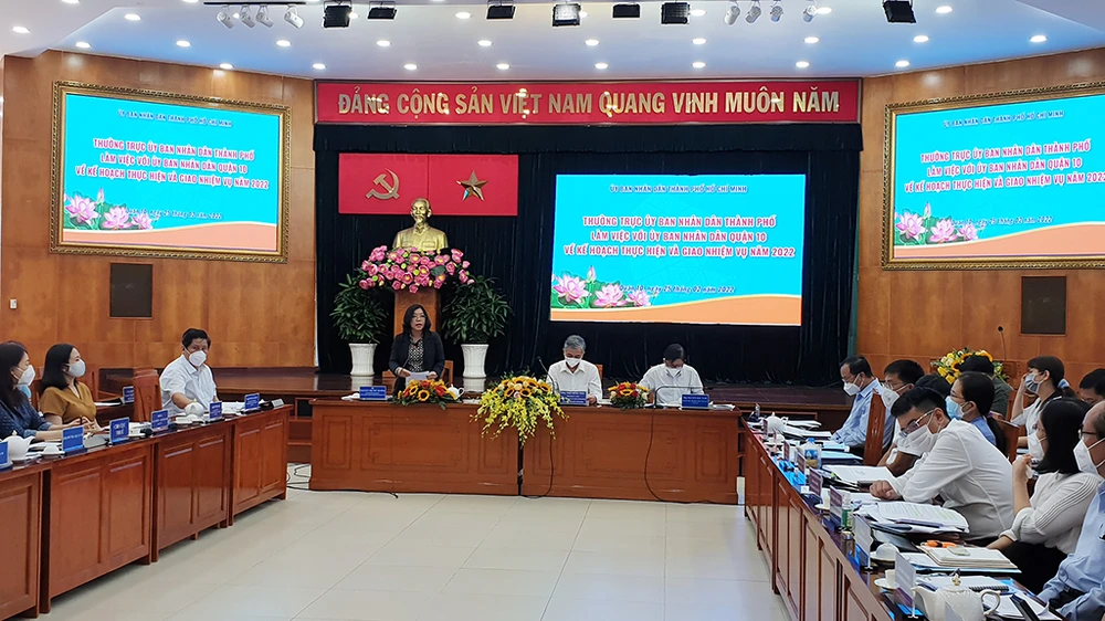 Ngày 25-2, đoàn Thường trực UBND TP.HCM do ông Ngô Minh Châu, Phó Chủ tịch UBND TP.HCM làm trưởng đoàn có buổi làm việc với UBND quận 10 về kế hoạch thực hiện và giao nhiệm vụ năm 2022.