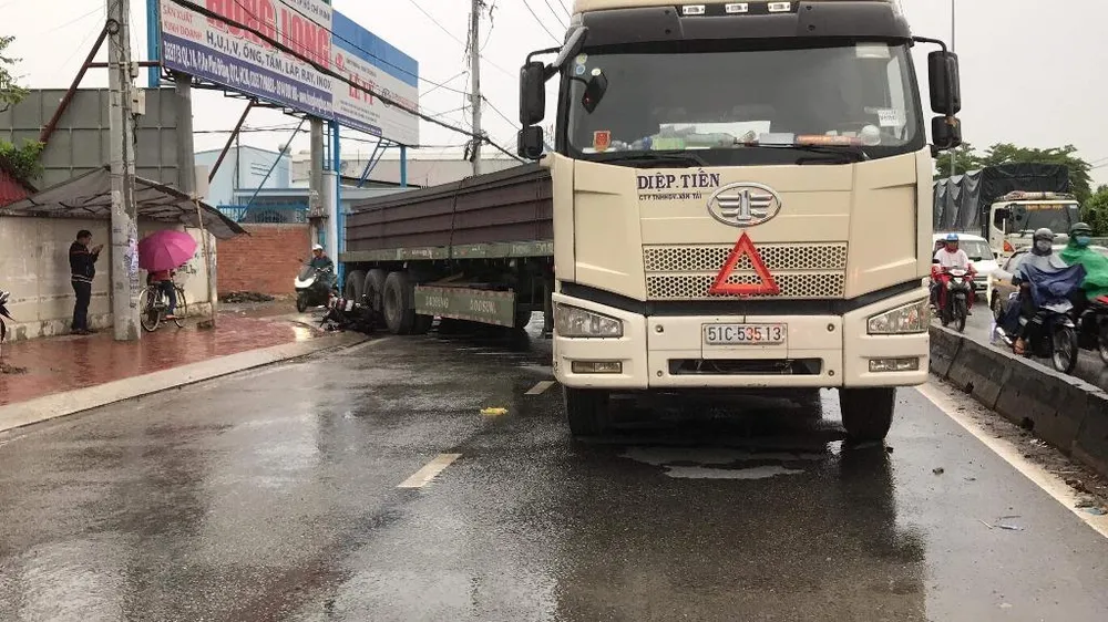 Chiều 9-6, trên quốc lộ 1 đoạn qua địa bàn quận 12 đã xảy ra vụ tai nạn giữa xe đầu kéo và xe máy khiến một phụ nữ trẻ bị thương rất nặng.
