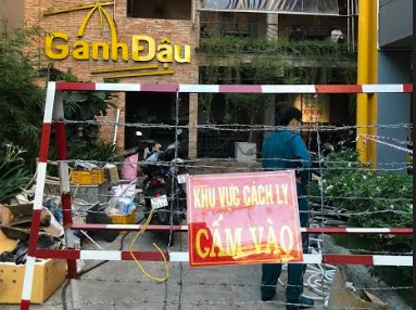 Phong tỏa điểm 2 ở quán Gánh đậu, khu phố 3A do có ca bệnh NHQD (23 tuổi). Anh D. là nhân viên quán Gánh Đậu, liên quan đến ca bệnh ở huyện Hóc Môn, TP.HCM.