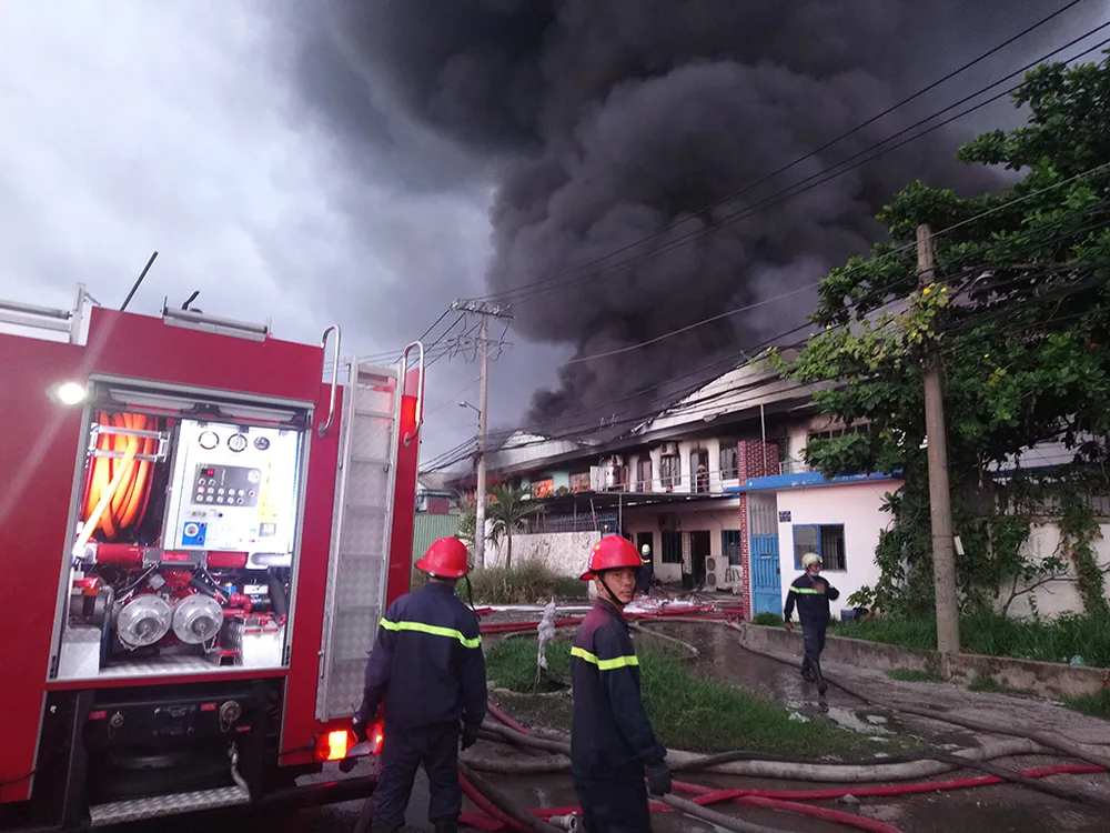 Khói lửa bốc lên dữ dội và lan sang một công ty chuyên về bao bì, in ấn lân cận. Cột khói cháy từ hai công ty bốc cuồn cuộn lên cao hàng trăm mét, sức nóng làm mái tôn, tường nhà xưởng đổ sập.