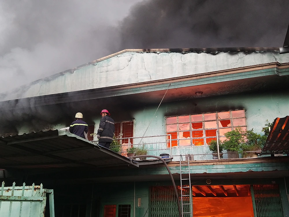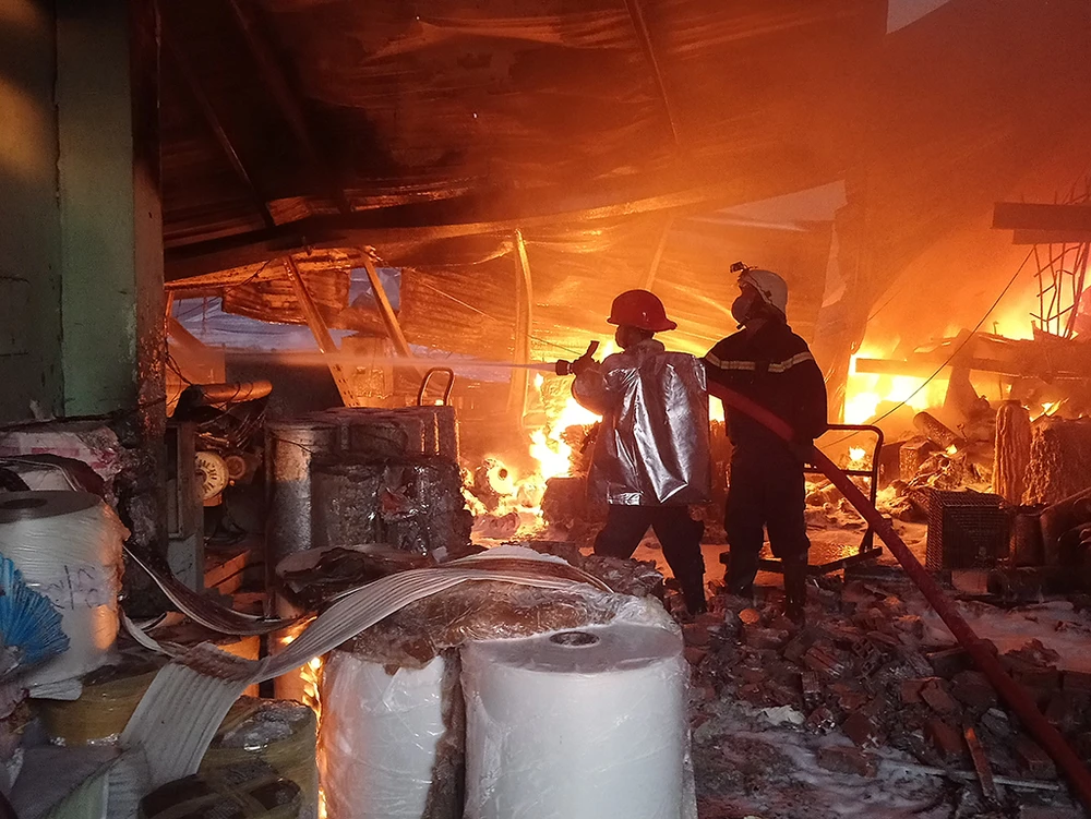 Hỏa hoạn bùng phát từ công ty chuyên sản xuất khăn lạnh rồi lan rộng. Ảnh: H.TÂM