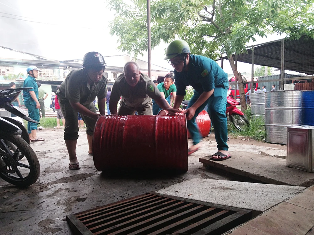 Nhiều người cố gắng tiếp cận, huy động phương tiện, lực lượng tại chỗ dập tắt đám cháy ban đầu. Tuy nhiên, do thời điểm sáng sớm, khu vực chỉ có các bảo vệ, lửa gặp vật liệu dễ cháy nên trong phút chốc đã lan rộng. Nhiều người được huy động di dời vật liệu dễ cháy ở kho xăng và kho hóa chất trong công ty ra ngoài để đảm bảo an toàn.