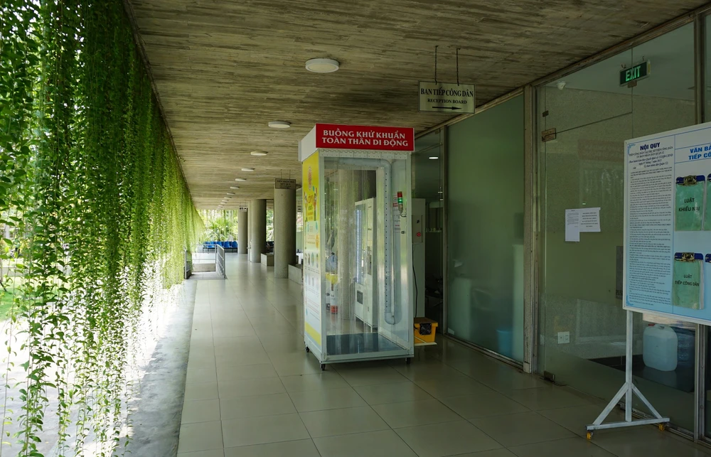 Buồng khử khuẩn được đặt trước bộ phận tiếp nhận và trả kết quả. (Ảnh do UBND quận 12 cung cấp)