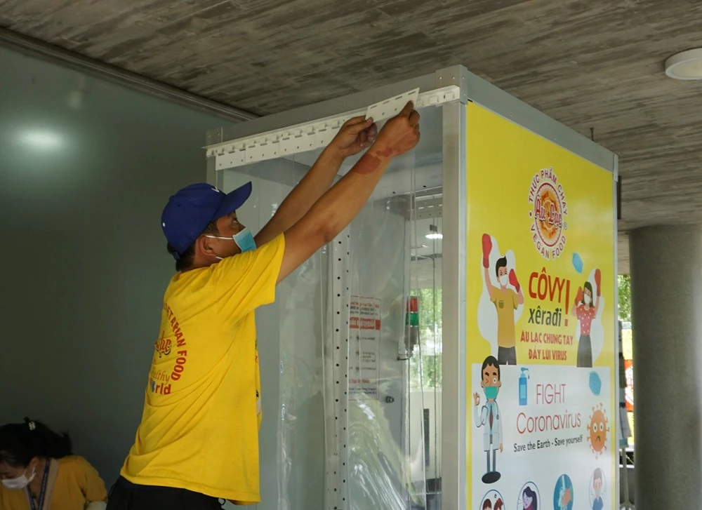 Buồng khử khuẩn đã được đưa vào sử dụng trong sáng nay (26-3). (Ảnh do UBND quận 12 cung cấp)