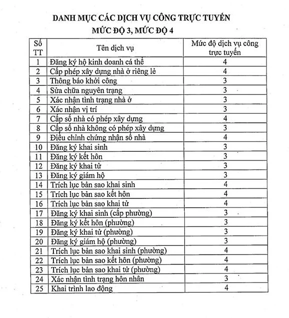 - Thực hiện việc tiếp nhận hồ sơ hành chính của người dân qua dịch vụ công trực tuyến mức độ 3, 4.