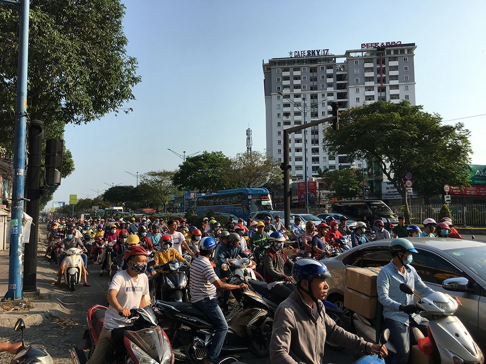 Giao thông qua khu vực ùn ứ nghiêm trọng do trong giờ cao điểm. Ảnh NT.