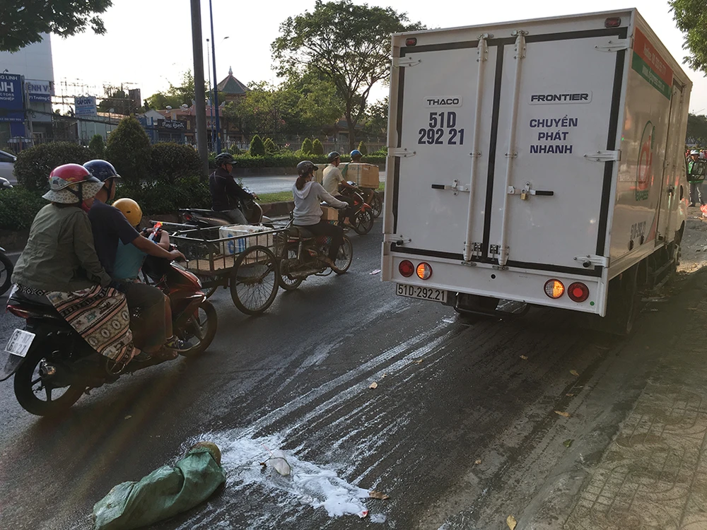 Theo đó, chiều 23-2, chiếc xe tải chở hàng chuyển phát nhanh nói trên do nam tài xế khoảng 30 tuổi điều khiển chở bên trong xe các thùng hoá chất dạng lỏng chạy trên đường Trường Chinh theo hướng từ cầu Tham Lương về An Sương.