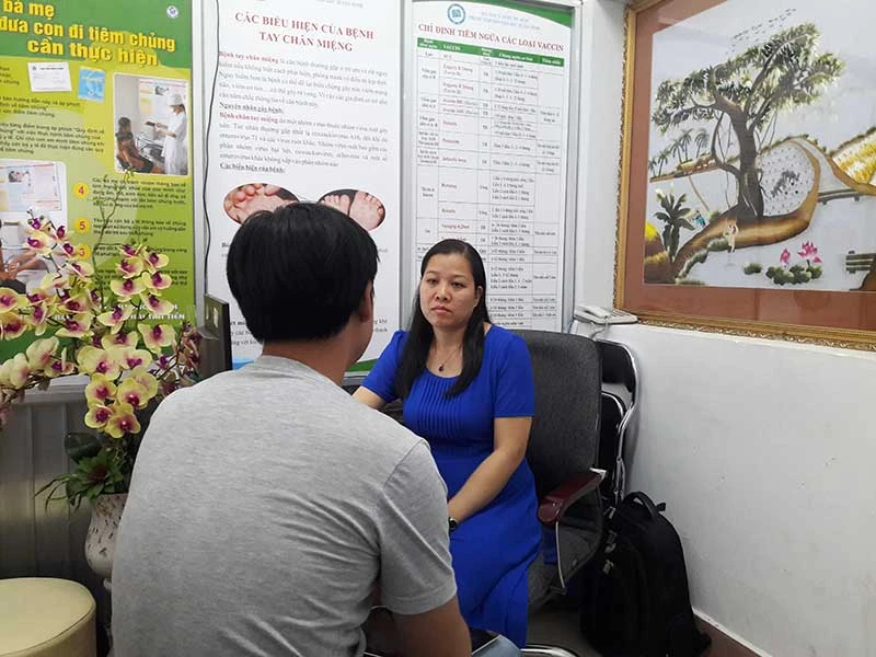 ThS-BS Nguyễn Ngọc Diệp đang trò chuyện với bệnh nhân tại phòng khám tâm lý lâm sàng. Ảnh: HP
