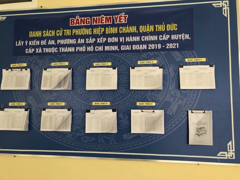 Hiện nay, nhiều phường ở quận Thủ Đức đã niêm yết danh sách cử tri lấy ý kiến thành lập TP Thủ Đức. ẢNH: THANH TUYỀN