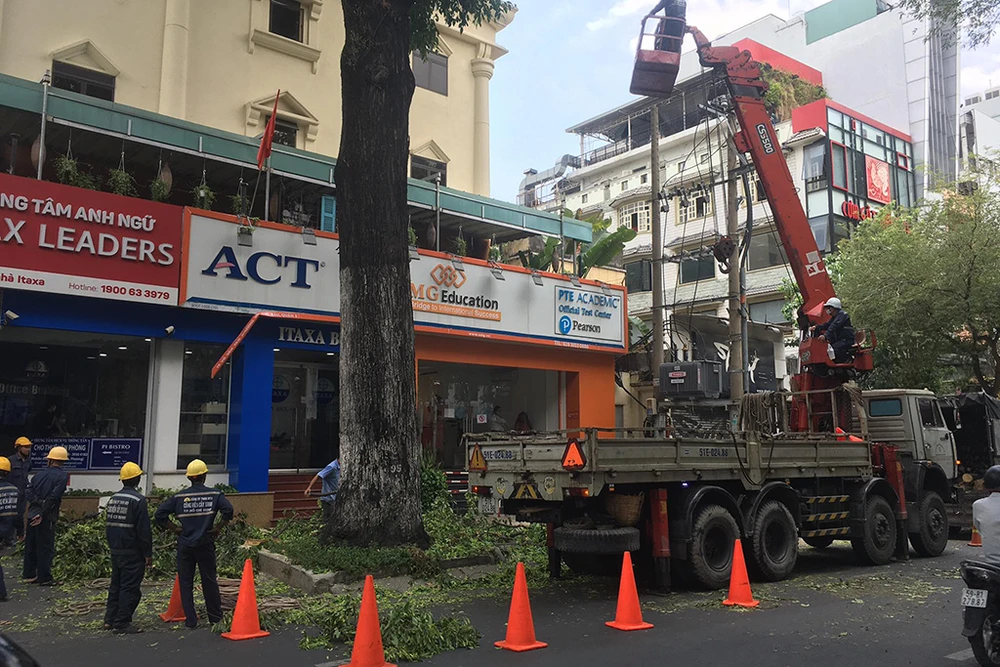 Nhân viên cây xanh sau đó có mặt xử lý sự cố, phân luồng giao thông. Ảnh HT