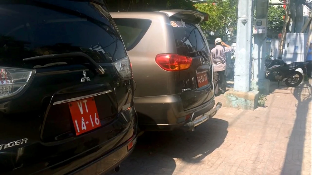 Trên đường Trần Quốc Thảo, thấy ba ô tô mang biển số đỏ đậu trên vỉa hè nên đoàn kiểm tra lập tức dừng lại lập biên bản, yêu cầu tài xế đưa xe vào bãi đỗ đúng quy định.