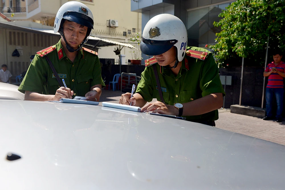 Chủ xe cũng đồng ý với việc lập biên bản và đóng phạt. Ảnh: D.DUY