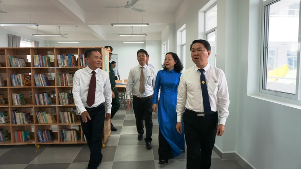 Bà Thái Thị Bích Liên, Thành ủy viên, Bí thư Quận ủy quận 4 (giữa) cùng ông Trần Hoàng Quân, Phó Bí thư quận ủy, Chủ tịch UBND quận 4 (bìa phải) tham quan công trình.