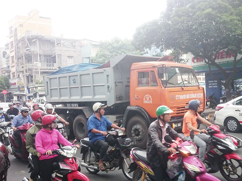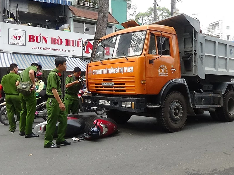 Thông tin ban đầu, chiều 2-3, một chiếc xe tải của Công ty TNHH MTV Môi trường đô thị TP.HCM lưu thông trên đường Lê Hồng Phong hướng từ vòng xoay ngã bảy về đường Hùng Vương.