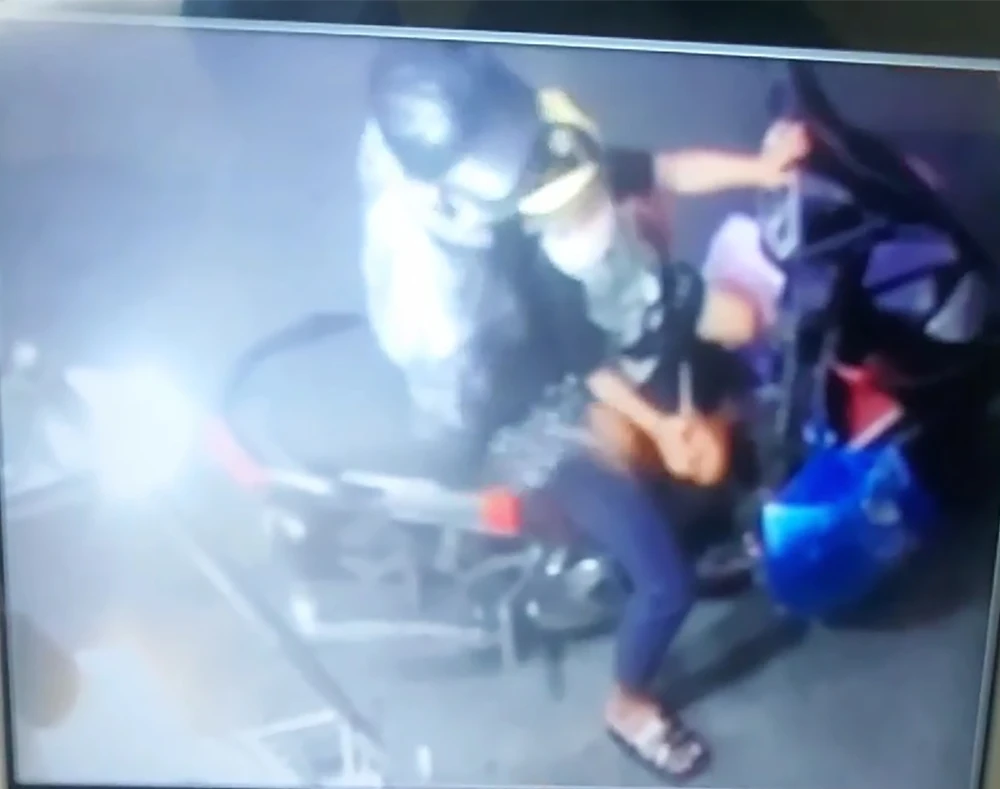 Người đàn ông chở theo đứa trẻ được camera an ninh ở cửa hàng ghi lại. Ảnh chụp màn hình