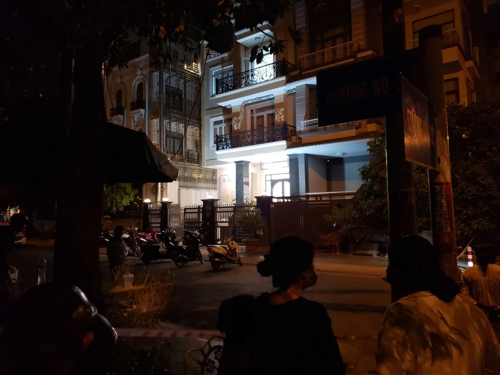 Người dân đang tụ tập bên ngoài vì nghe thông tin có vụ án mạng, phân xác trong căn nhà 4 tầng. Ảnh: T.SANG