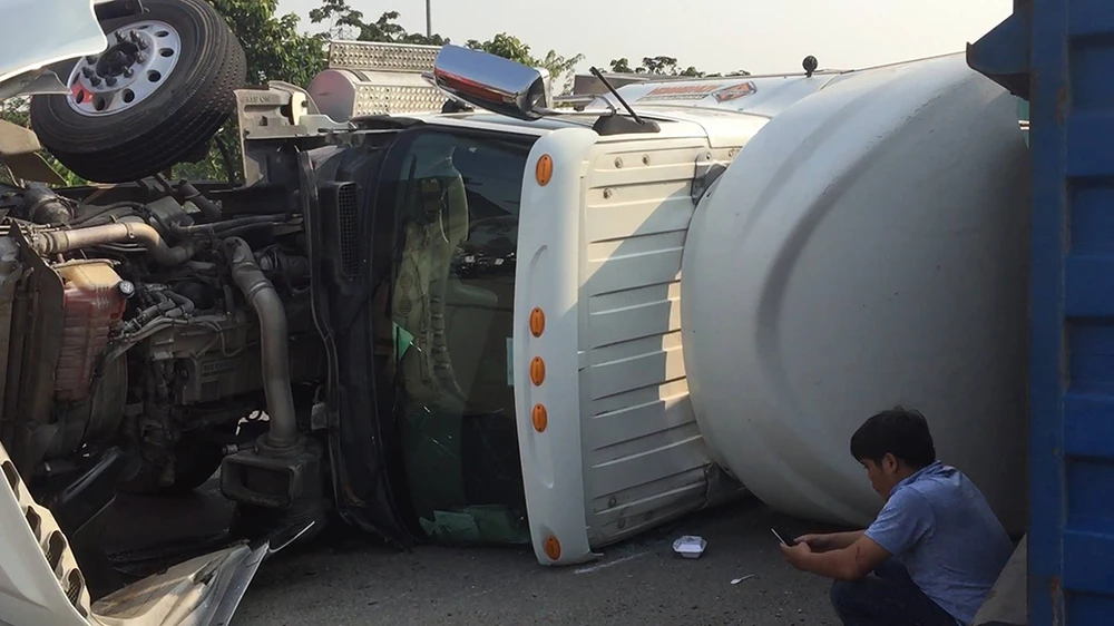Khi đến cầu vượt Trạm 2 (phường Tân Phú, quận 9, TP.HCM), tài xế cho xe ôm cua lên cầu vượt để về quốc lộ 1 hướng đi An Sương, do cua gấp khiến chiếc xe container bị nghiêng rồi lật nhào.