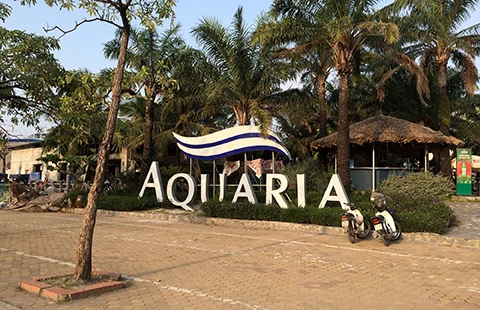 Nằm án ngữ trục đường Lê Đức Thọ rộng và đẹp nhất Hà Nội, toàn bộ khuôn viên mặt tiền của Cung thể thao dưới nước được cho kinh doanh nhà hàng Aquaria với tổ hợp dịch vụ cà phê, ăn uống. Theo tìm hiểu của PV, nhà hàng này đã tồn tại từ gần chục năm nay với những tên gọi khác nhau, có diện tích lên tới vài ngàn mét vuông, được xây dựng thành nhiều tổ hợp trong đó có hệ thống nhà hàng một tầng, đường dẫn, quầy lễ tân, khu cà phê… Đặc biệt khu nhà hàng này còn đang xây dựng thêm một dãy nhà hai tầng với diện tích vài trăm mét vuông. Điều đáng nói là Cung thể thao dưới nước - nơi nhà hàng Aquaria án ngữ đã từng được Nhà nước đầu tư hơn 240 tỉ đồng với hệ thống ba bể bơi trong nhà phục vụ hoạt động thể thao dưới nước.