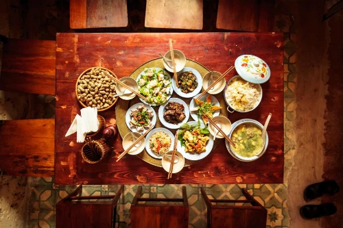 Thực đơn cửa hàng được thiết kế giống quyển sổ mua lương thực thời bao cấp, bên ngoài ghi "Sổ đăng ký mua lương thực". Ngay cả những món ăn cũng có thể khiến thực khách là thế hệ đi trước xúc động khi đọc tên như cơm độn khoai, bánh đúc, phở không người lái, phở trộn cơm nguội, dưa xào tóp mỡ...