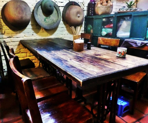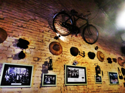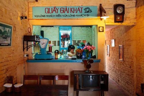 Đẩy cửa bước vào trong, thực khách như được trở về quá khứ vì không gian và tất cả mọi đồ vật, nội thất đều sử dụng chất liệu được xem như kỷ vật thời tem phiếu, giai đoạn những năm 1970 - 1980 của thế kỷ trước. Từ bức tường gạch sơn trắng, những vật treo tường như chiếc nón, xe đạp Thống Nhất, băng cát xét, đôi dép, tranh ảnh đen trắng... đến quạt tai voi, tivi cổ đều toát lên màu sắc thời gian.