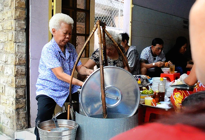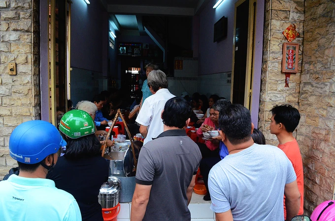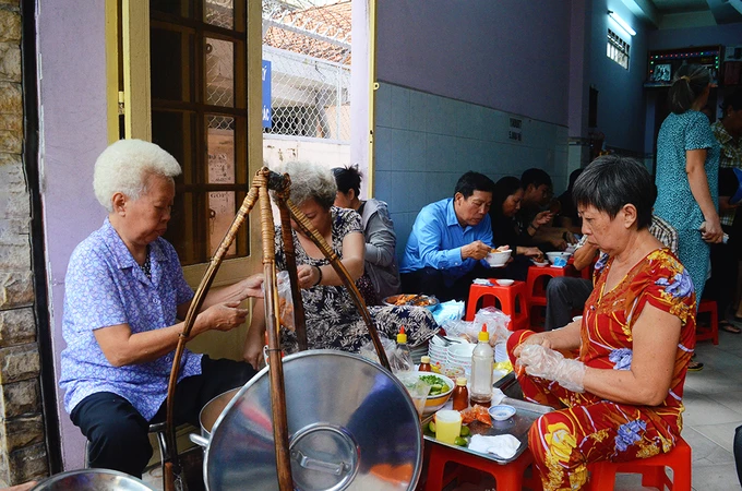 Địa chỉ này nổi tiếng ở Sài Gòn nhiều năm qua vì chỉ bán đúng một tiếng. Bà chủ có mái tóc bạc (ngồi ngoài cùng, bên trái) cùng các chị em trong gia đình đã bán từ rất lâu. Ai hỏi thăm thì chỉ nhận được câu trả lời là “đã mấy mươi năm rồi” hoặc “đã rất lâu rồi”.
