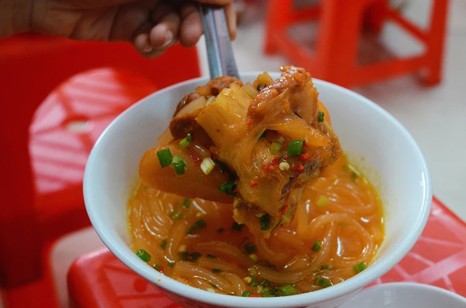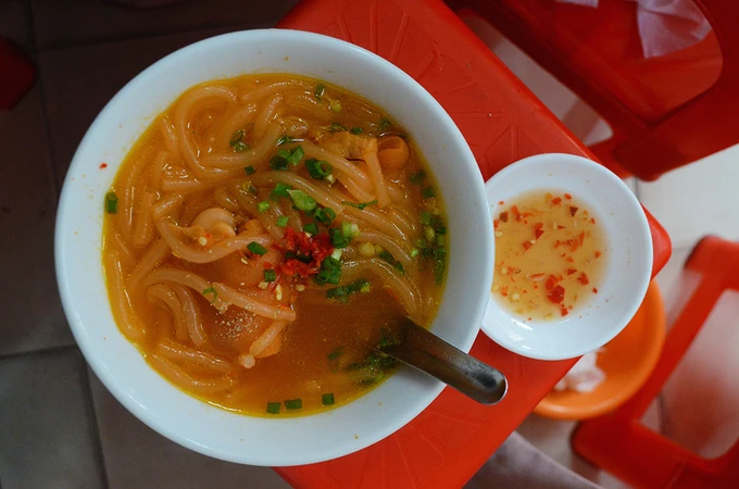 Sợi bánh canh sau khi ngậm đủ nước dùng có mùi thơm, mềm và dai. Nước dùng thơm và béo. Giò heo được xử lý kỹ nên giòn và mềm. Khi ăn, bạn chấm thêm ít nước mắm ớt cay để tăng thêm mùi vị. Giá cho một phần ăn dao động trong khoảng 25.000-40.000 đồng, rẻ nhất là tô bánh canh giò.