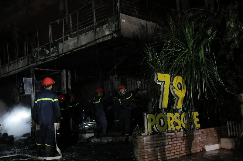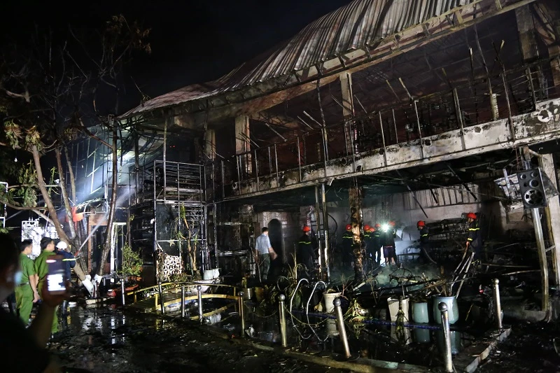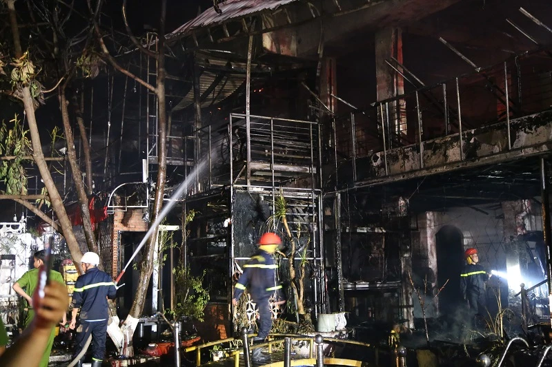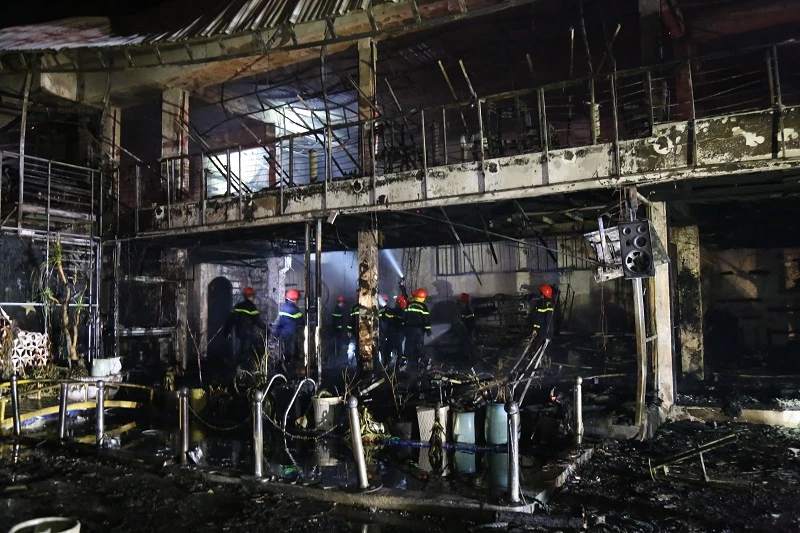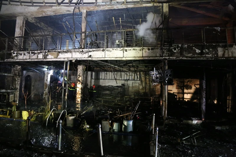 Quán bar bị cháy lúc nửa đêm. Ảnh: H.TRƯỜNG